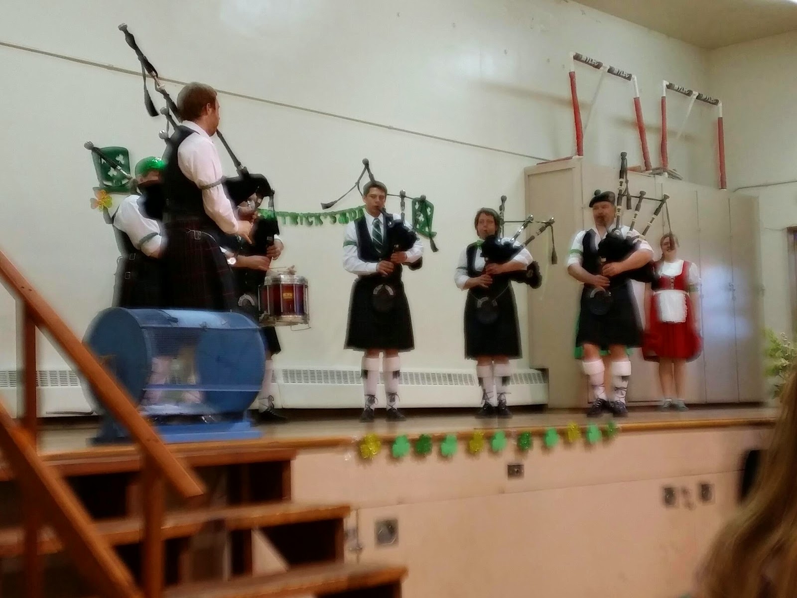 Then we went to Sacred Heart school and watched the Boise bagpipers and then, surprisingly, we were able to watch the Killarney Irish Dance Company. I had wanted to watch the dancers earlier in the day but we didn't have time. I was so excited they were there. We showed up because we thought it was just a free performance of the bagpipers. But, no. It was a charity event. They wanted $10 a plate. Since we had just eaten they allowed us to go in and sit on the side for free. We felt bad but they were so nice. They even offered us cake. (We graciously declined!)